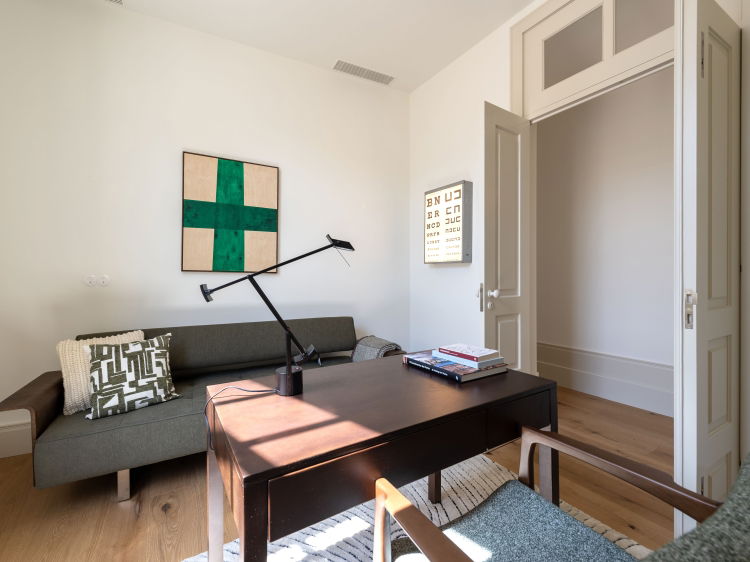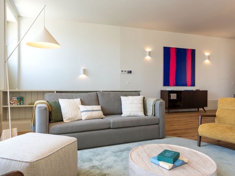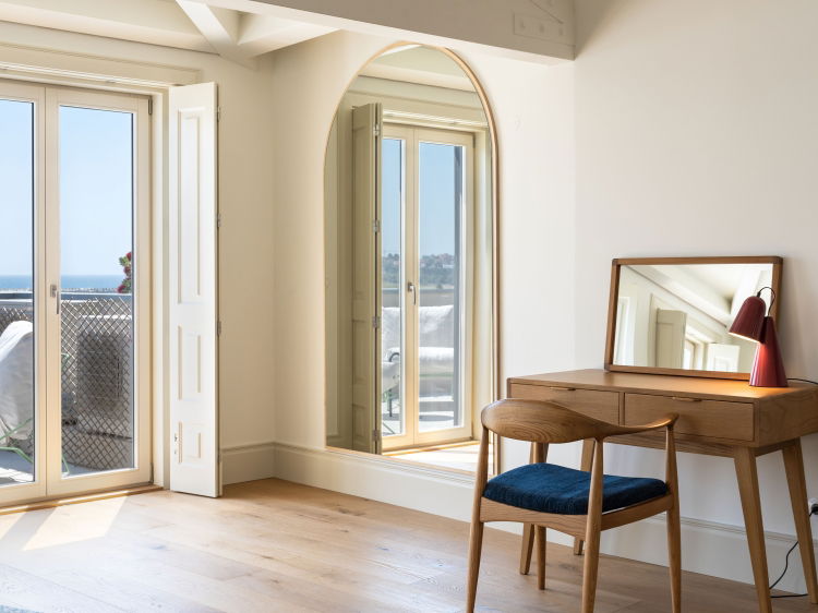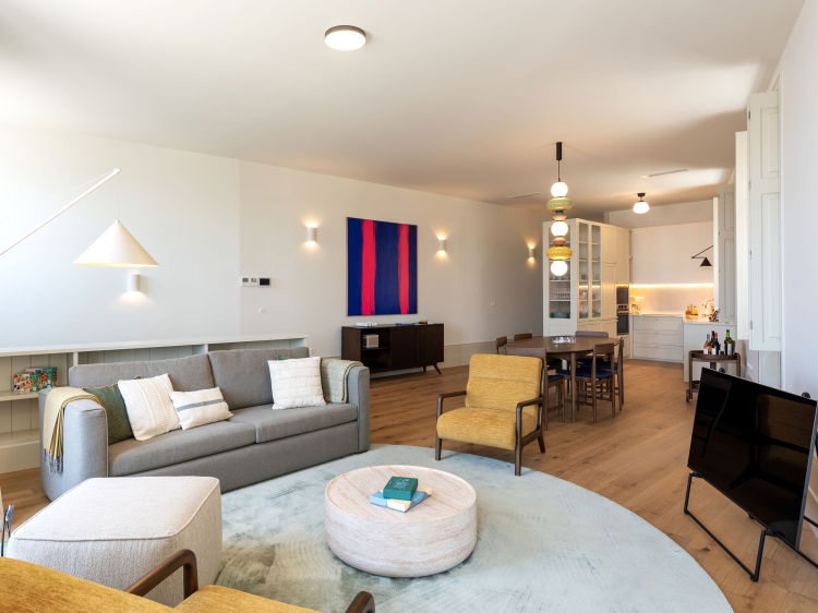 Casa do Farol is a three storey, three bedroom villa, elegantly rebuilt in Foz do Douro, where the river meets the Atlantic. The lovely blue of the view accompanies you from morning to evening. The house has a minimalist, carefully considered design, full of light, with open, comfortable spaces.