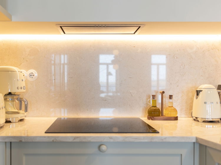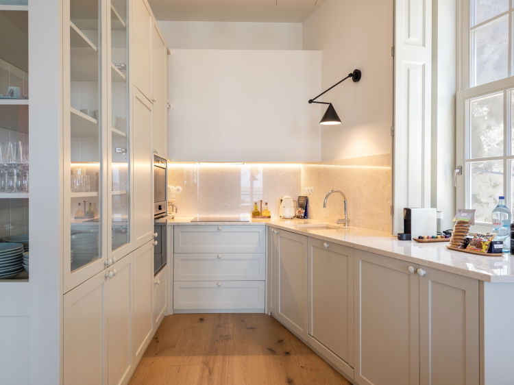 The kitchen is very well equipped and designed for longer stays. It includes an oven, microwave and hob, as well as a fridge freezer and dishwasher. You will find complete cookware, crockery and cutlery, a dining table and wine glasses. For everyday use there is a coffee machine with coffee, a kettle, toaster and blender. The house has a private entrance, beach towels and 500 Mb/s Wi Fi, plus easy parking right outside the door.